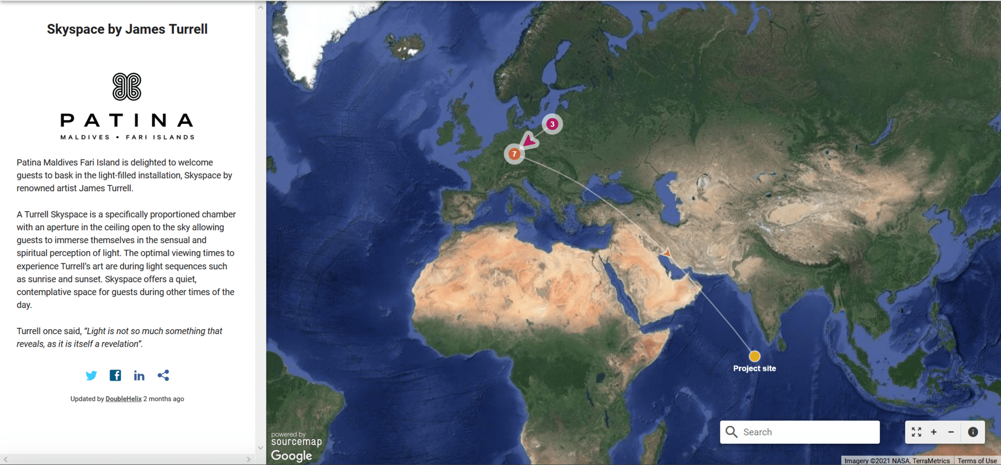 The new resort not only uses PEFC-certified timber in its construction, but the onsite James Turrell Skyspace is PEFC Project Certified by Venturer Timberwork of Singapore. DoubleHelix was engaged to map the timber supply chain for the featured Skyspace and verify the flow of certified timber along it, tracking it from PEFC-certified European forests to the Indian Ocean island. All this information is transparently presented in Sourcemap, accessible to anyone who cares to explore further.